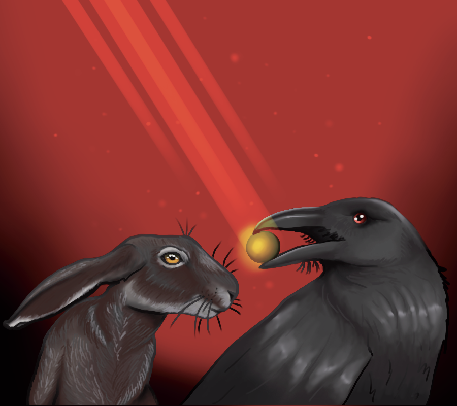 Hare inspects Crow's golden ball